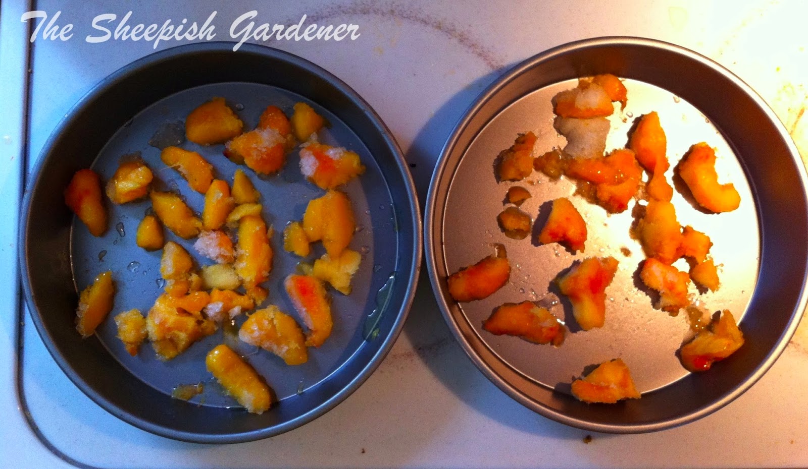 I poured the raspberry puree over the fruit in the pans and put it in the freezer.